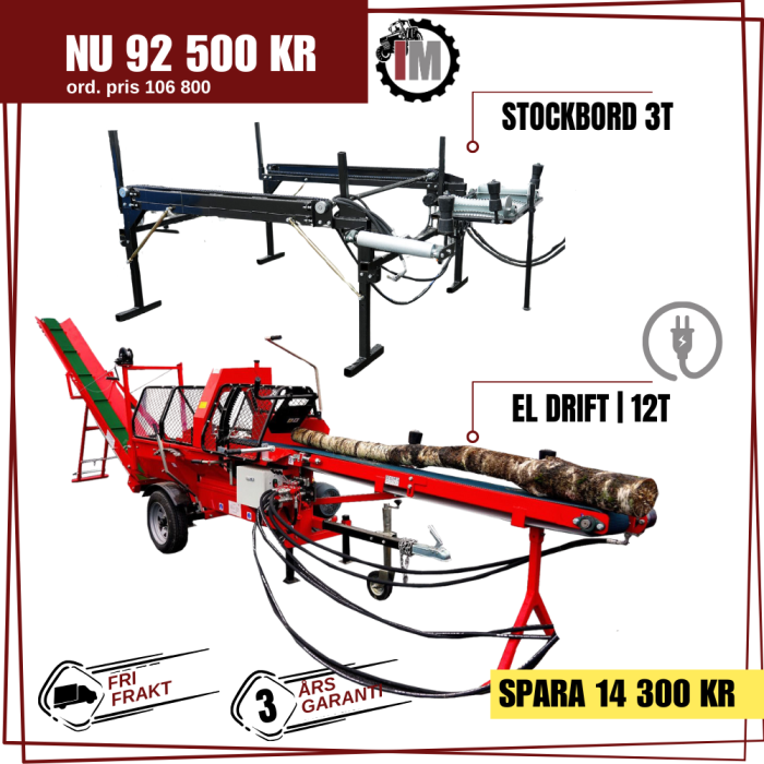 | 12T Elektrisk | 7.5KW 380/50HZ 3 fas 16A CE elektrisk motor | 12 Ton | 38 cm | 50 cm | Stihl 18” 71x .325 | 2200x900x1900mm | 660 kg | 7s |